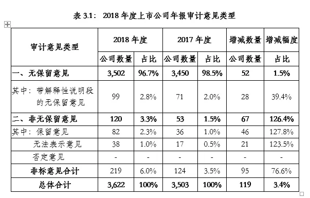 截至2019年4月30日,按期披露审计报告的上市公司共3,622家,其中主板1,938家(包括B股17家)、中小板929家、创业板755家。